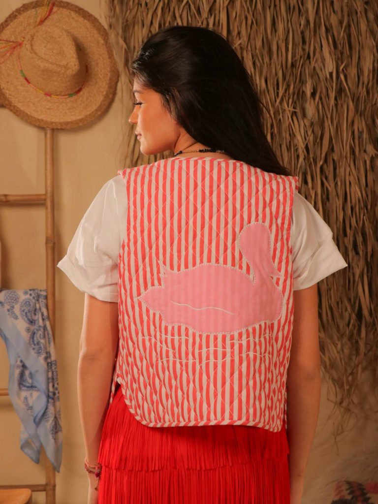 Duck embroidery on the pocket and a large embroidered motif on the back.