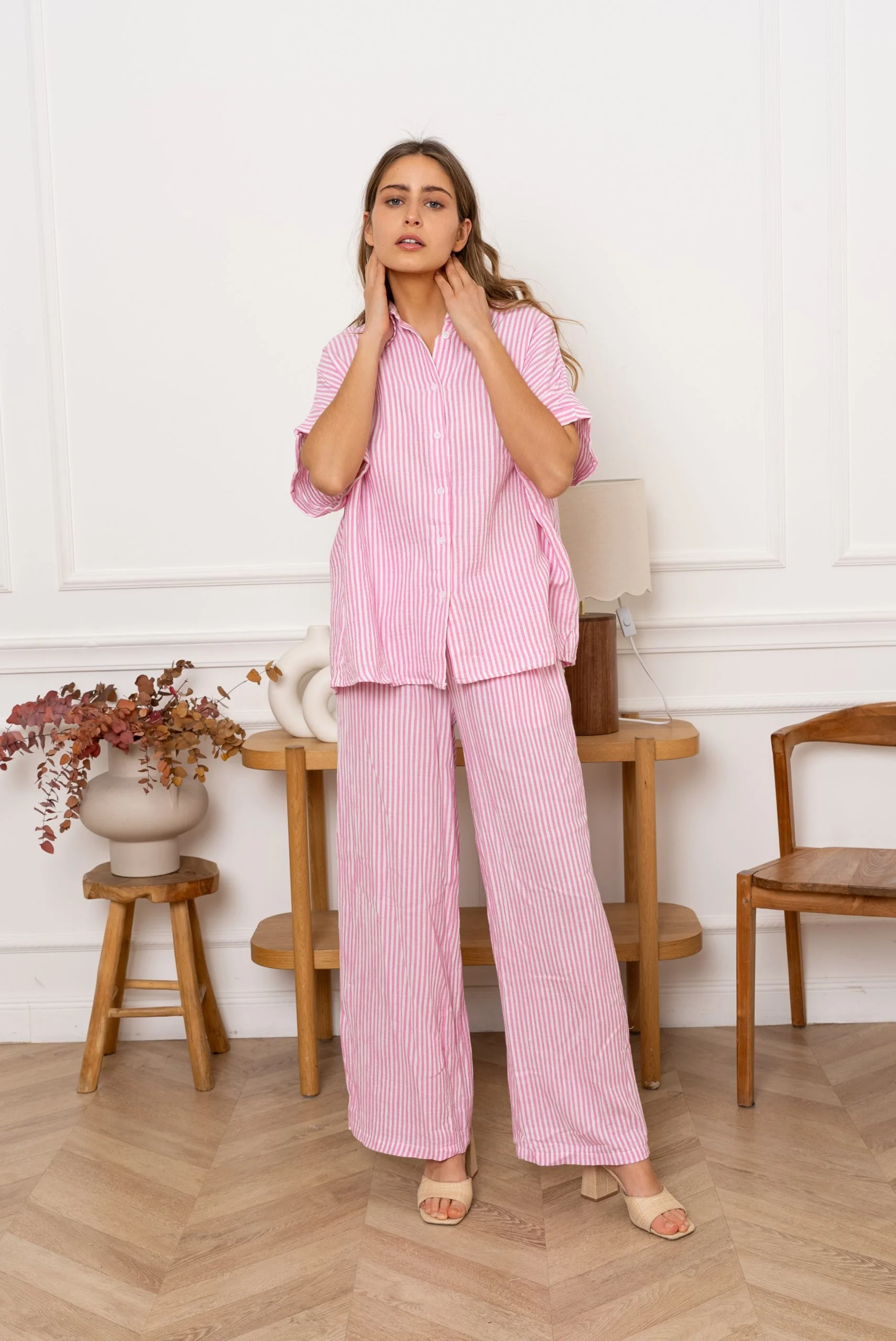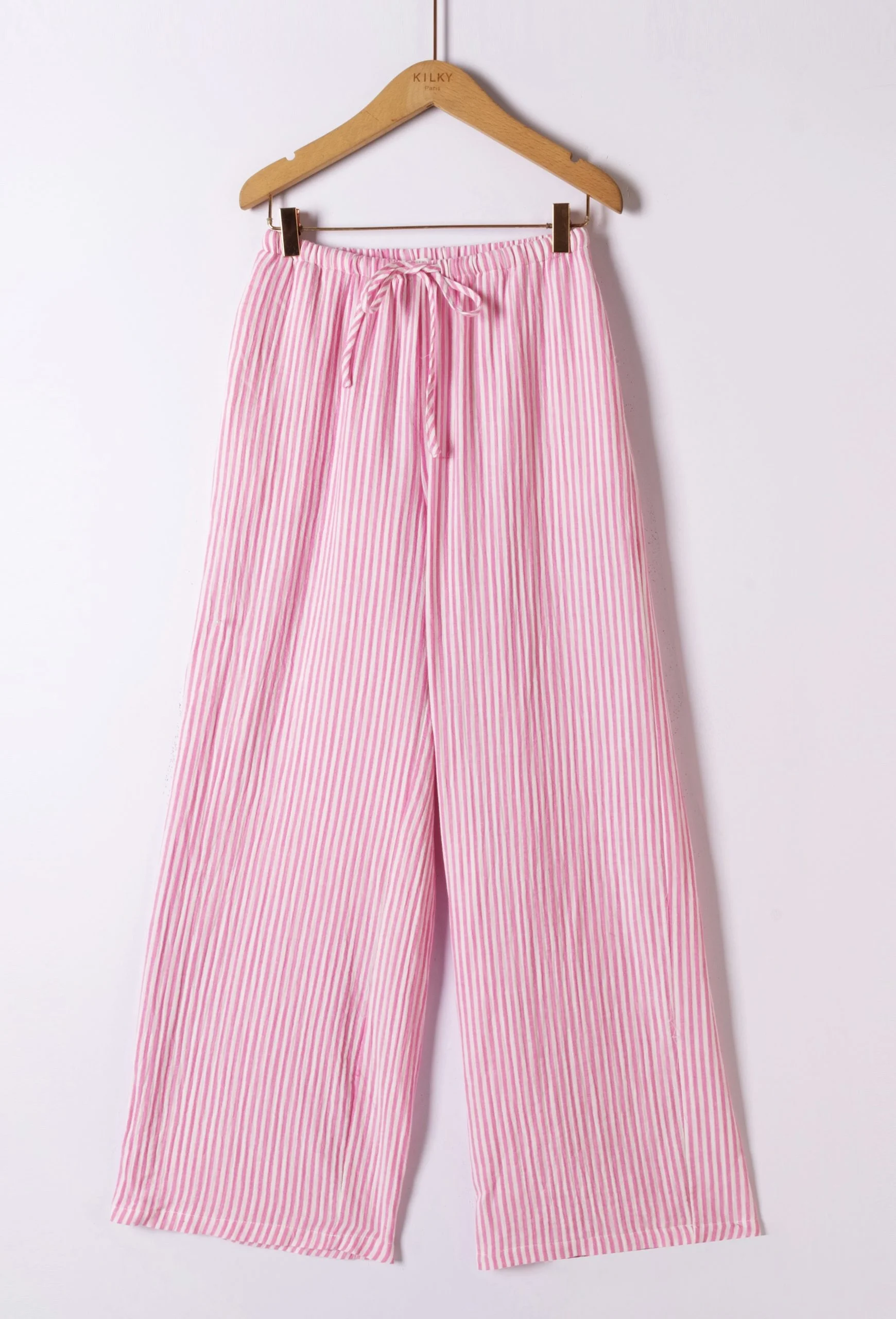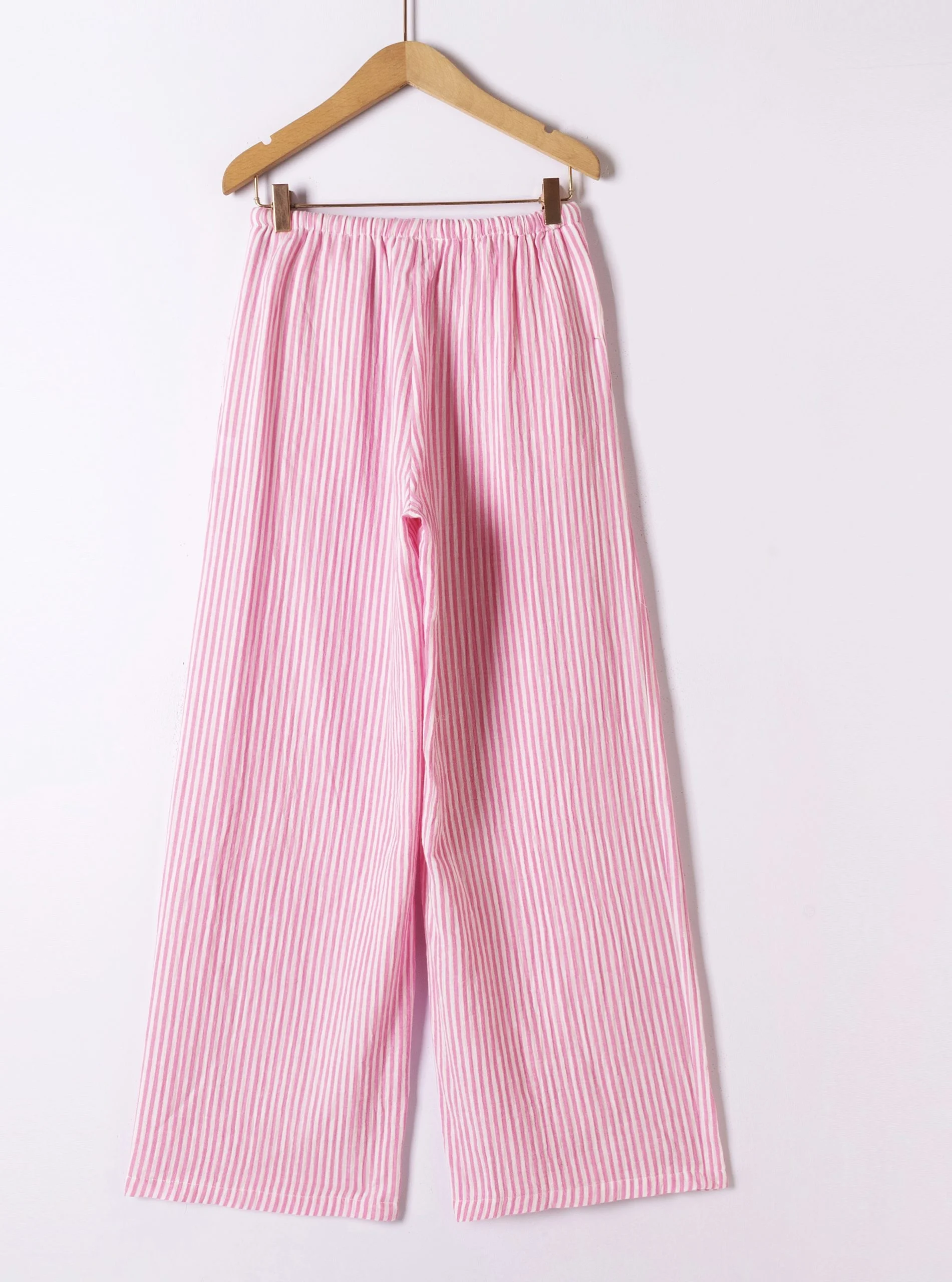 Their loose, flowing cut offers ideal freedom of movement, while their stripes subtly elongate the silhouette.