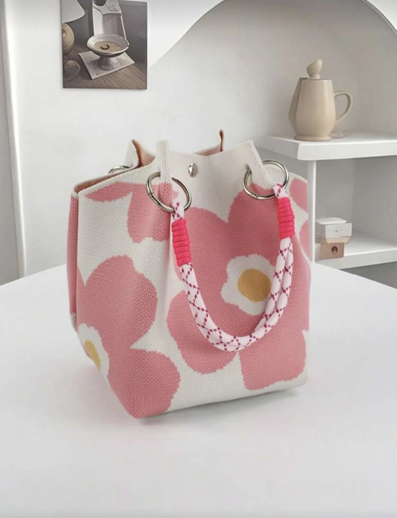 Turn heads with this vibrant tote, designed with bold colors and a woven texture that feels as rich as it looks. Thick rope-style handles and oversized metal rings add a playful, statement touch, while the roomy interior easily fits all your daily essentials. More than just a bag, it’s main-character energy in carryall form.